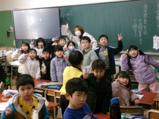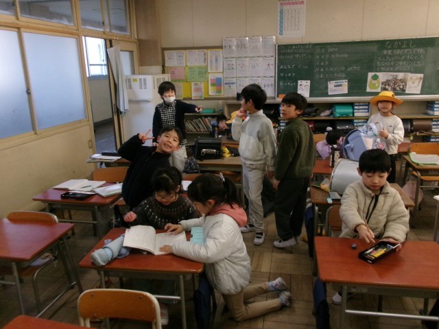 2/4 今朝 1年生の教室「みんな笑顔!」