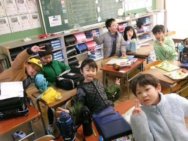 今朝の1年生教室のようすです。毎朝、先生が子どもたちが教室に入ってくる表情を確認しています。「おはよう~」と声をかけると多く子が笑顔を返してくれます。今日は新入学児の入学説明会が実施されます。4月から新しく入学する子にやさしくしてあげてくださいね。※3枚目写真の「+」をクリックすると、そ以外の笑顔を見ることができます。
