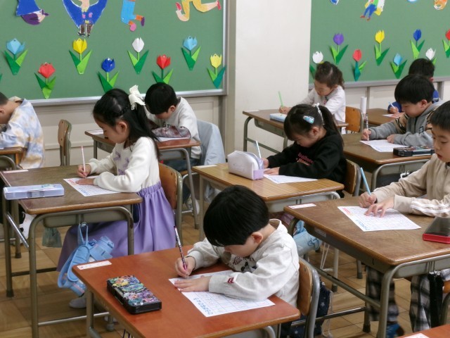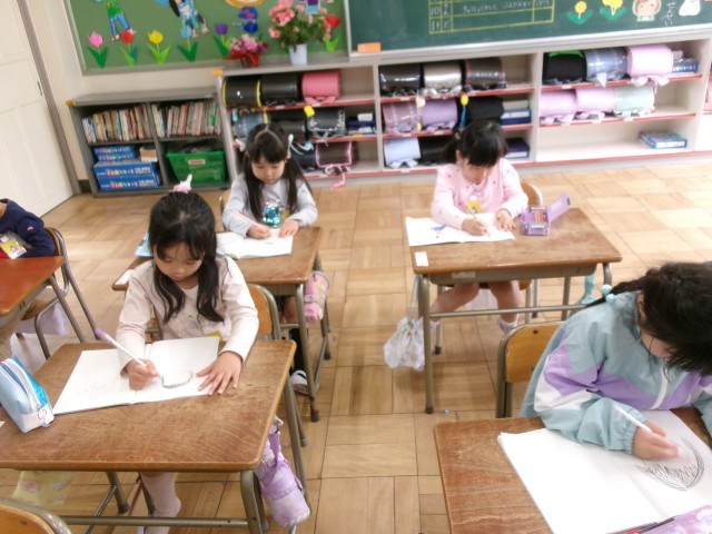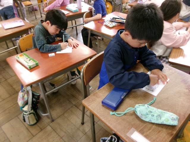 スキルタイムの様子です。ひらがなの練習をしたり、名前を書く練習をしたりしていました。どのクラスも落ち着いた雰囲気で過ごすことができています。先生の話の聞き方もとても上手にできています。