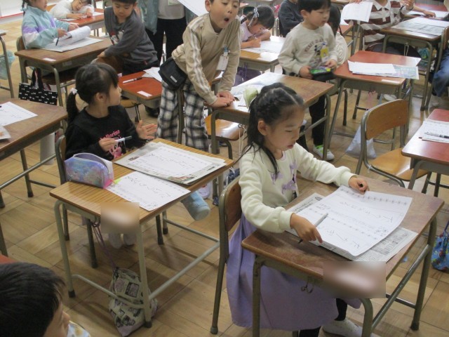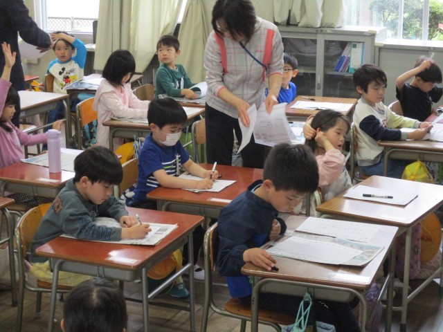 今日の1年生の教室では、なまえを書く練習をしていました。