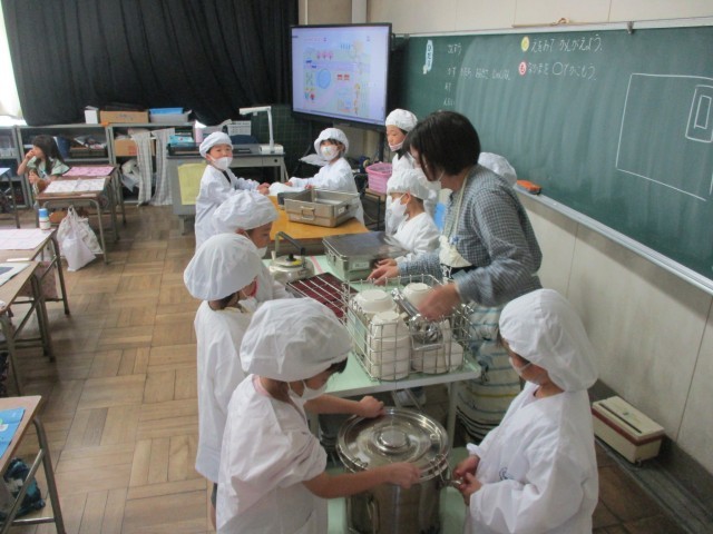 4/14 1年生 給食の準備