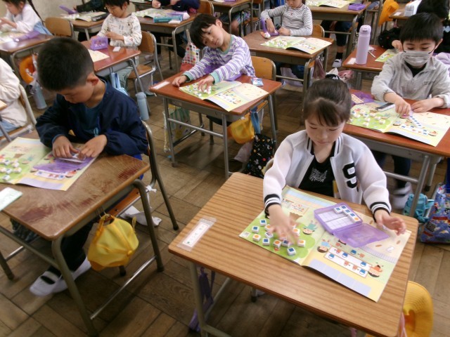 今日の算数では、初めて数図ブロックを使って数字の学習をしました。楽しそうにブロックを移動させながら、数を数えて、2つの量のどちらが多いかを考えました。これからどんどん数字を学んでいきましょうね。