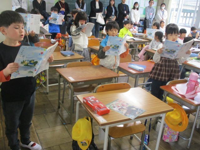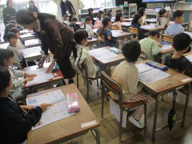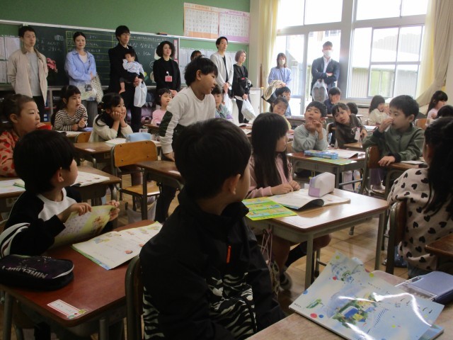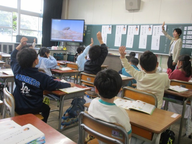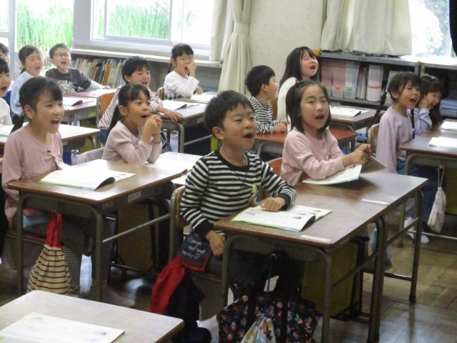 2時間目の授業の様子です。たくさんの保護者の方に参観していただき、ありがとうございます。子どもたちはいつも以上にはりきっている様子でした。大きな口ではっきりと言葉を言う練習をしているクラスもありました。宿題の音読練習をしているときにも、ひと声アドバイスをしていただけると幸いです。