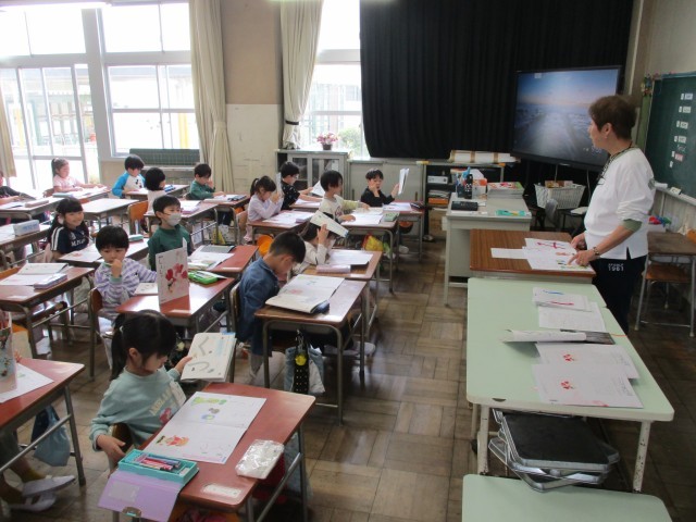 2時間目の授業の様子です。たくさんの保護者の方に参観していただき、ありがとうございます。子どもたちはいつも以上にはりきっている様子でした。大きな口ではっきりと言葉を言う練習をしているクラスもありました。宿題の音読練習をしているときにも、ひと声アドバイスをしていただけると幸いです。