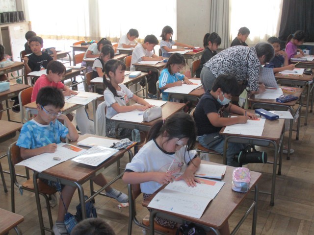 来週から読書週間が始まります。今日は来週に向けて、本を1冊借りました。そのあとに、ペア学年のお兄さんお姉さんに読書郵便を送る準備をしました。心を込めて丁寧に書く様子が見られました。