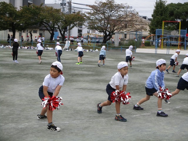 土曜日の体育祭に向けて、毎日がんばって練習をしています。顔の向きに気をつけて、かっこよく踊ることができるように練習しました。すてきな演技を見てもらえるようにがんばります!