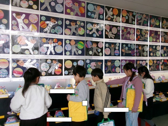 各学年の作品を鑑賞しました。どの学年を見ても「すごい!」「上手!」「かわいい!」などの声が聞こえて、感動でいっぱいでした。素敵な作品がたくさんありましたね。