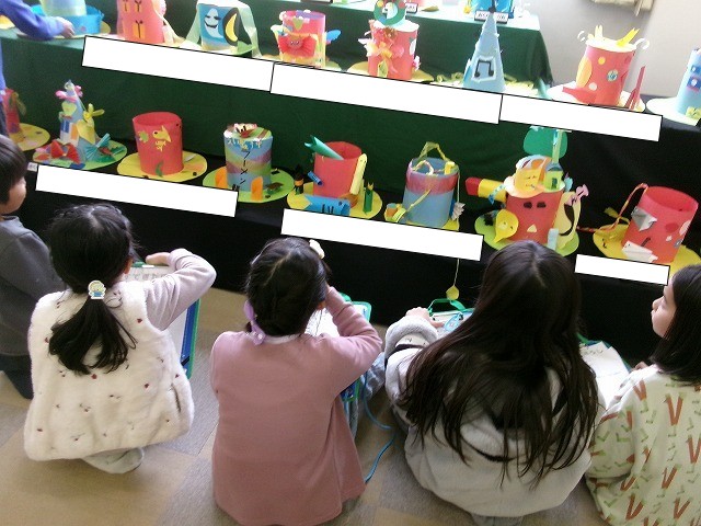 想像力を働かせて、オリジナル帽子を作っています。ひとりひとり、その子らしい作品を作っていて完成が楽しみです。