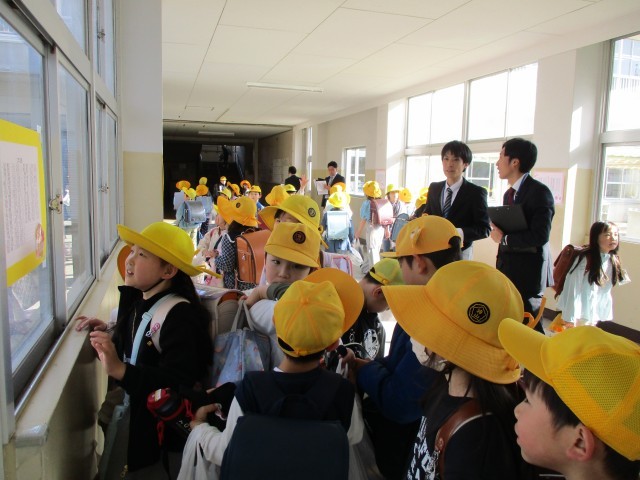 新学期のスタートは、学級名簿を見ながら、自分のクラスを確かめて新しい教室に行きました。2階に上がり、新しい教室、新しい仲間にわくわくしながらも、自分の席に座って待つことができるすてきなスタートをきることができました。始業式の後は、新しい担任と一緒に教室に戻り、新しい教科書、新しい靴箱の位置の確認など、新しいことがいっぱいの中、話を聞いて行動しようとがんばる姿がたくさんありました。