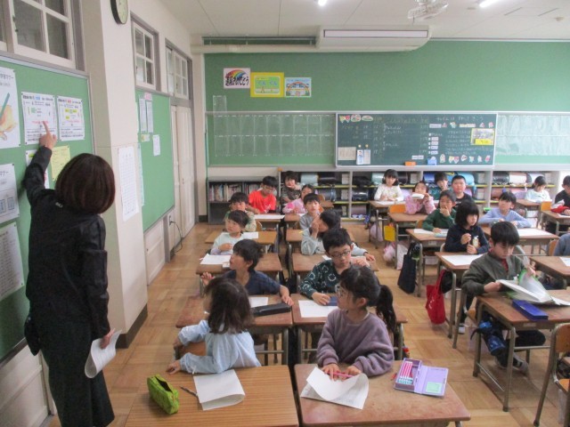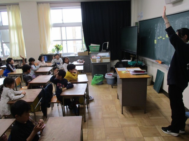 今日は、ALTの先生の英語の授業がありました。自己紹介クイズ・食べ物・動物・アルファベット・色・数字など英語の単語をたくさん発音することができました。最後に、アルファベットクイズもしました。みんなとても楽しそうでした。