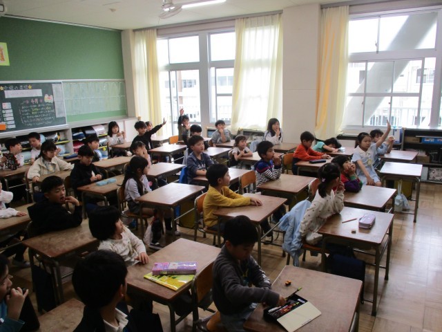ドキドキの2日目。今日は1時間目に学年集会を行いました。この時間では、学年目標の「ぐんぐん」をもとに、「やる気いっぱい・おもいっきり・きらっとひかる」神山っ子を目指して一年間ぐんぐん成長していこうという話がありました。その後の授業では、やる気いっぱいに自己紹介カードなど先生の話をしっかり聞き取り組む姿が見え、きらっとひかる2年の姿がたくさんみえました。
