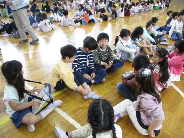 ドキドキの2日目。今日は1時間目に学年集会を行いました。この時間では、学年目標の「ぐんぐん」をもとに、「やる気いっぱい・おもいっきり・きらっとひかる」神山っ子を目指して一年間ぐんぐん成長していこうという話がありました。その後の授業では、やる気いっぱいに自己紹介カードなど先生の話をしっかり聞き取り組む姿が見え、きらっとひかる2年の姿がたくさんみえました。