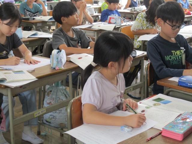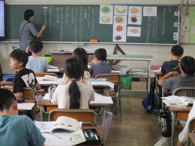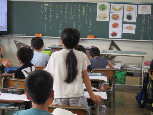国語で「すがたをかえる大豆」の学習をしています。大豆がどんな工夫をして食べられているのかを読み取りながら、学習を進めています。また、筆者の説明のしかたの工夫も考えながら、読み進めています。自分で文章を書くときにも生かしていけるように学んでいます。