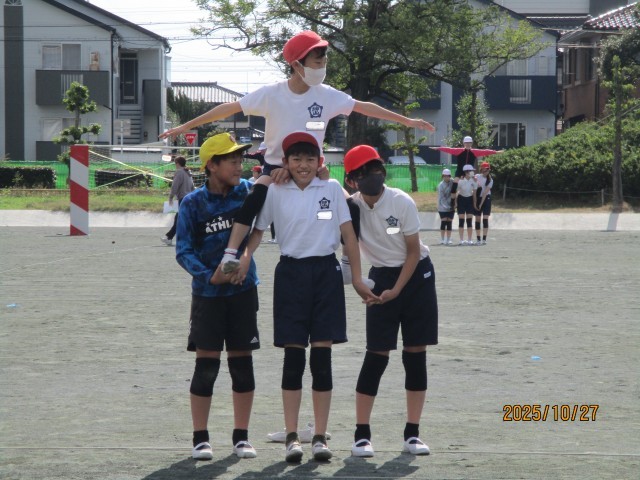 3年生は体育祭練習の隊形移動の練習やソーラン節の練習に取り組んでいます。ソーラン節で頑張る以外にもいろいろな隊形移動を覚えながら練習しています。子どもたちも素早く自分の隊形に移動するためにはどうすればよいかを考えて行っています。今後も隊形道の練習や表現のレベルアップを目指して頑張ります。