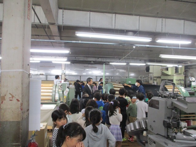今日は、社会科の「工場で働く人の仕事」のまとめ学習として、実際に織物工場を見学しました。大きな機械や機械を動かすときの大きな音、布の触り心地など、実際に見て・聞いて・触ることで、学習したことがさらに理解することができました。見学の説明や子どもたちの質問に答えていただいた工場の皆様、本当にありがとうございました。