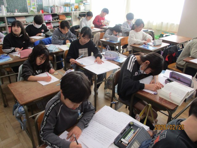今日は書写の授業で、硬筆を行いました。普段の習字の学習と違い、鉛筆を使って丁寧に漢字を書いていました。落ち着いて丁寧に字を書く姿がとても印象的でした。今回の学習で学んだことを活かして、字を書くことの楽しさを少しでも感じてもらえると嬉しいです。