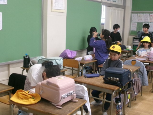 帰りの準備をする様子です。新しいクラスにもだんだんと慣れてきて、帰りの用意もスムーズにできるようになってきました。明日も元気に学校に来てね。