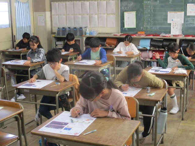 4年生の1時間目の様子です。4クラスが国語の授業をしていました。「未来につなぐ工芸品」の説明文で筆者の考えを読み取るクラスや手紙を書く練習をしているクラスがありました。文章をにらめっこしながら授業を受けている様子が見られました。また、算数では図形の面積を求める学習をしていました。様々な形の図形の面積をどのようにして求めるのか一生懸命考えていました。