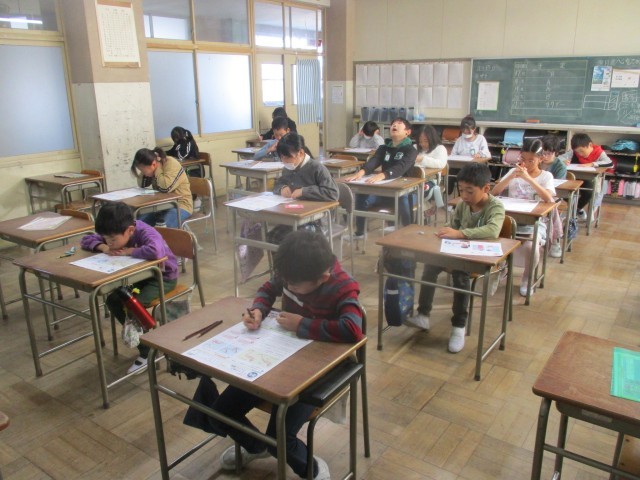 4年生の子どもたちみんな、集中して取り組んでいました。算数では概数について学んでいました。ペアでの話し合いもしっかりできています。