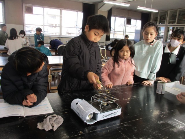 水は温度によって体積が変化するのか、実験をして調べました。実験器具の取り扱い方に注意しながら、真剣に取り組む姿が見られました。