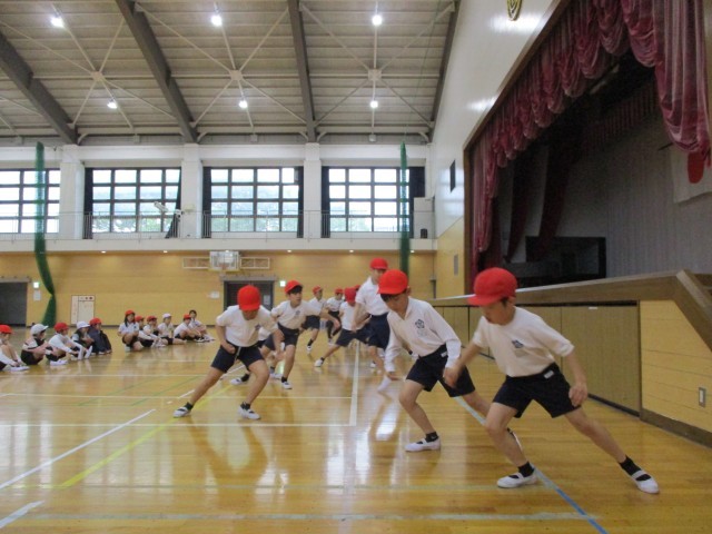 今日の体育は、全身を使った「体じゃんけん」に挑戦しました。その後は、体じゃんけんで「じゃんけん列車」を行いました。全身で勝負して後ろに繋がり、最後はクラス全員が一つになった立派な大列車が完成!体を思い切り動かし、笑顔あふれる時間になりました。