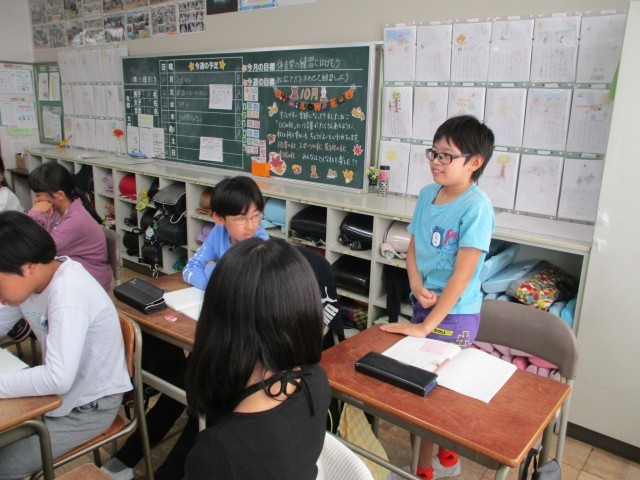 5年生、朝の様子です。友達と話したり、宿題を出したりと楽しそうに過ごしていました。