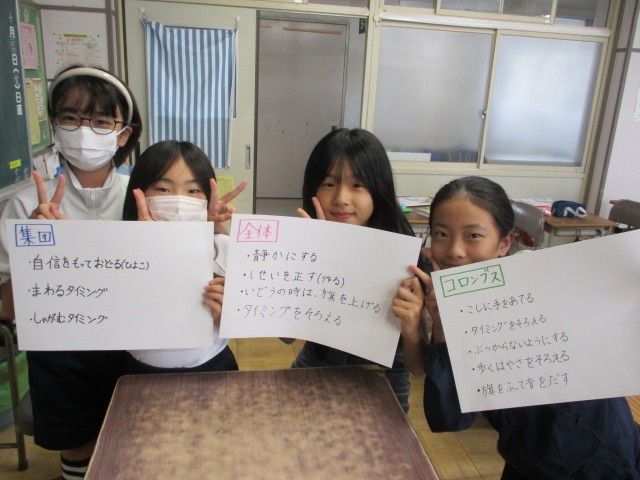 これまで、体育祭の練習を一生懸命行い、演技や場所を「覚える」ことは、もうしっかりできています。来週からは、さらに演技に「磨き」をかけていきます。話し合いの中で、一人一人が意見を出し合い、気をつけるべきところをまとめました。