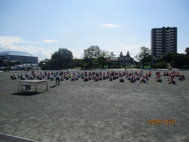 外への避難は今年度初めての練習です。しかし、静かに真剣に素早く行動することができました。