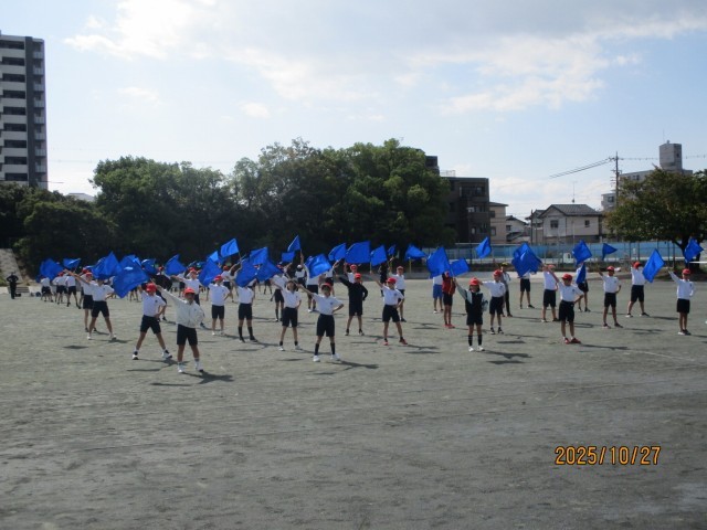 体育祭本番まであと少しとなりました。旗の角度や位置など細かいところに気を付けて練習しました。