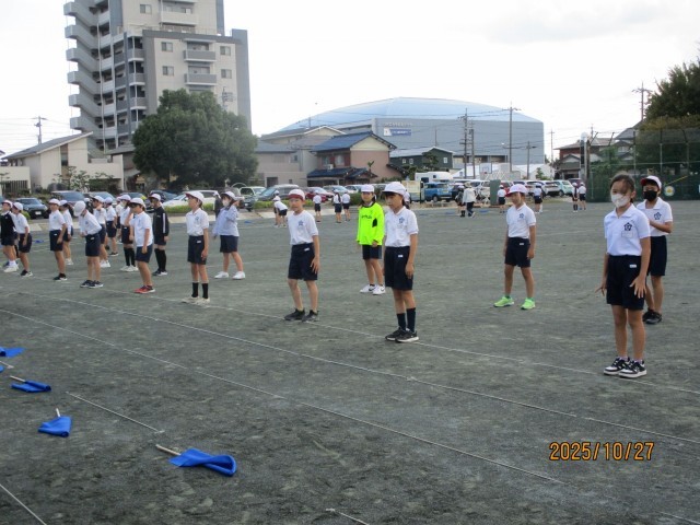 今日から本格的に体育祭の練習が始まります。初日は隊形の確認をメインで行いました。最初は小雨が降っていましたが、すぐにやんで練習を進めることができました。体育祭まで毎日体操服が必要となりますので、お忙しい中とは思いますが、ご準備のほどよろしくお願いいたします。