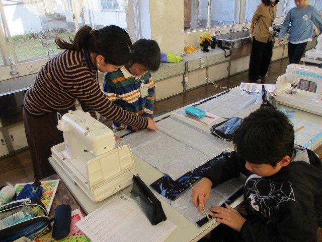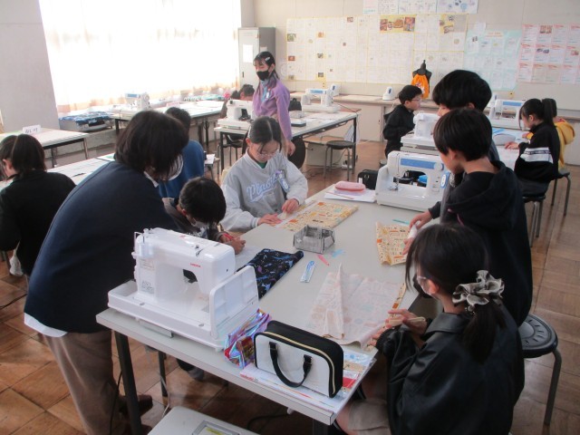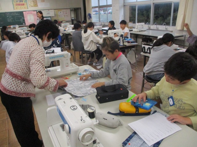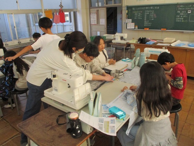 家庭科でミシンを扱っています。ボランティアの方に助けていただきながら、ミシンを上手に使えるようになっています。たくさんのボランティアの方に協力していただきながら、子どもたちは安心して、安全に活動することができています。技能もしっかり身につけています。本当にありがとうございます。これからもさまざまな場でご協力いただけると幸いです。子どもたちが笑顔いっぱいの姿で学校生活を送ることができるようにお願いいたします。