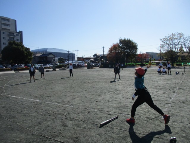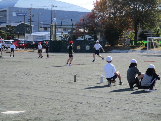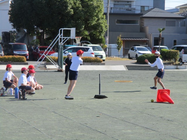 体育でティーボールのゲームをしています。ルールを学んで、ずいぶん上手にプレイができるようになっています。チームでの話し合いもしっかりできていました。応援にも力が入ります。