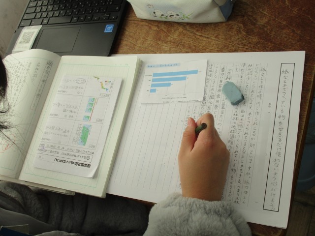 国語では、自然環境を守るために自分たちができることを、資料をもとに説明する文章を書きました。(2枚目)