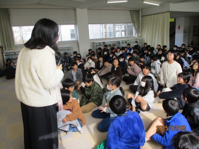 国際交流がありました。ニュージーランドの観光地について写真を見たり、クイズに答えながら楽しく学びました。