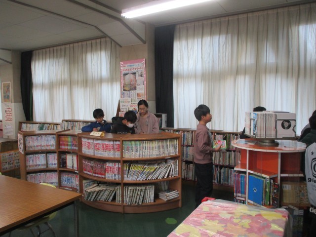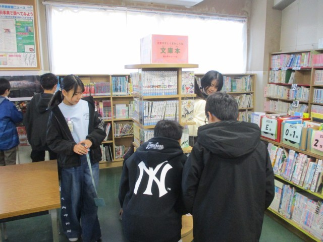 今日は冬休みに読む本の貸出日でした。みんな自分の気になる本を真剣に探しています。面白い本にたくさん出会える冬にしてくださいね。