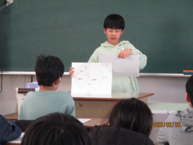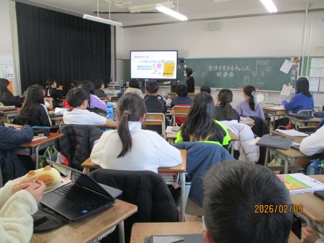 今日の家庭科では、家庭で実践した「生活を変えるチャンス」について、早くまとめができた人が発表をしていました。本棚を整とんした人や、断捨離を行った人などの取り組み方や感想を聞きました。次の週末に実践しようと思っている人は、参考にしてくださいね。