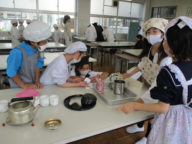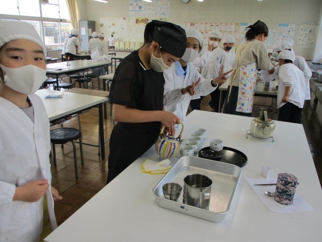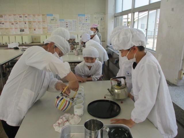 初めての調理実習で、お茶の入れ方の学習をしました。