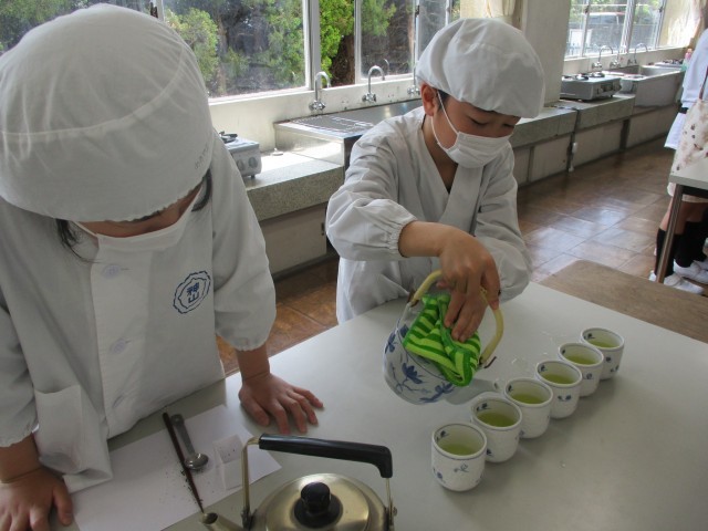 おいしいお茶の入れ方を勉強し、みんなで協力してお茶を入れました。