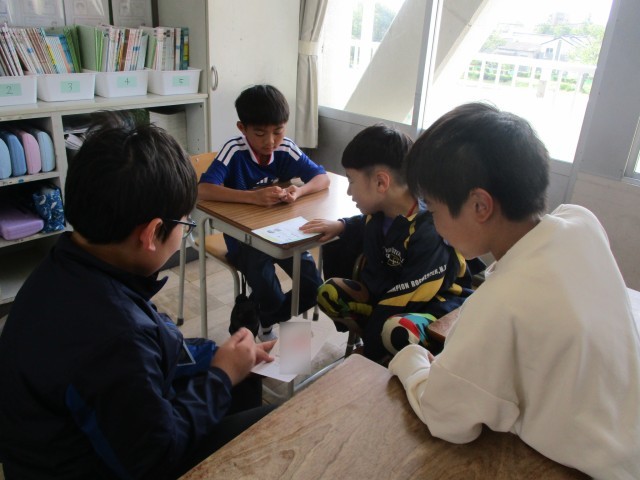 学活の時間では、キャンプの活動班で、楽しみながら課題に取り組む活動を行っています。協力し合える関係を作り、キャンプ当日が充実したものになることにつなげていきたいと思います。