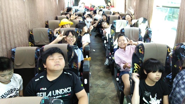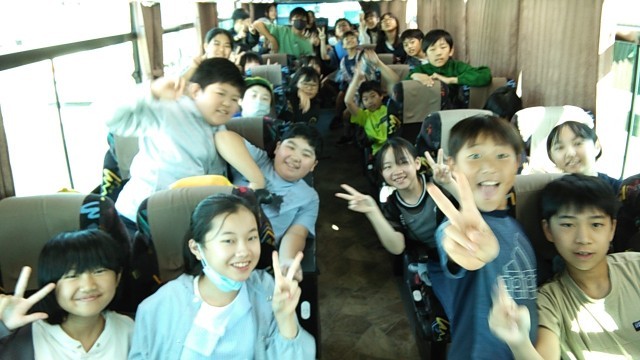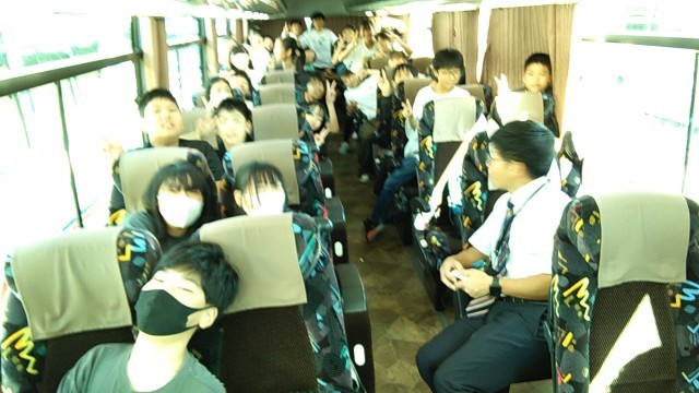 待ちに待った修学旅行がいよいよ始まりました。それぞれのクラスに分かれてバスに乗車して出発です。みんな笑顔です!