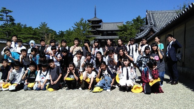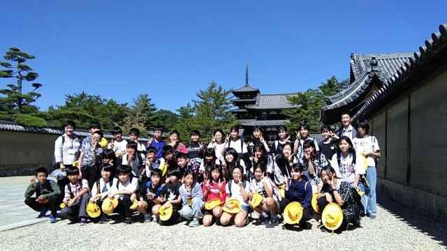 • 10/9 6年生 修学旅行 法隆寺で記念写真