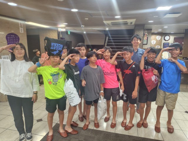 4組〜5組のバスも到着しました。15分遅れでこのあとの日程が進みます。しっかり宿の方に挨拶できました。