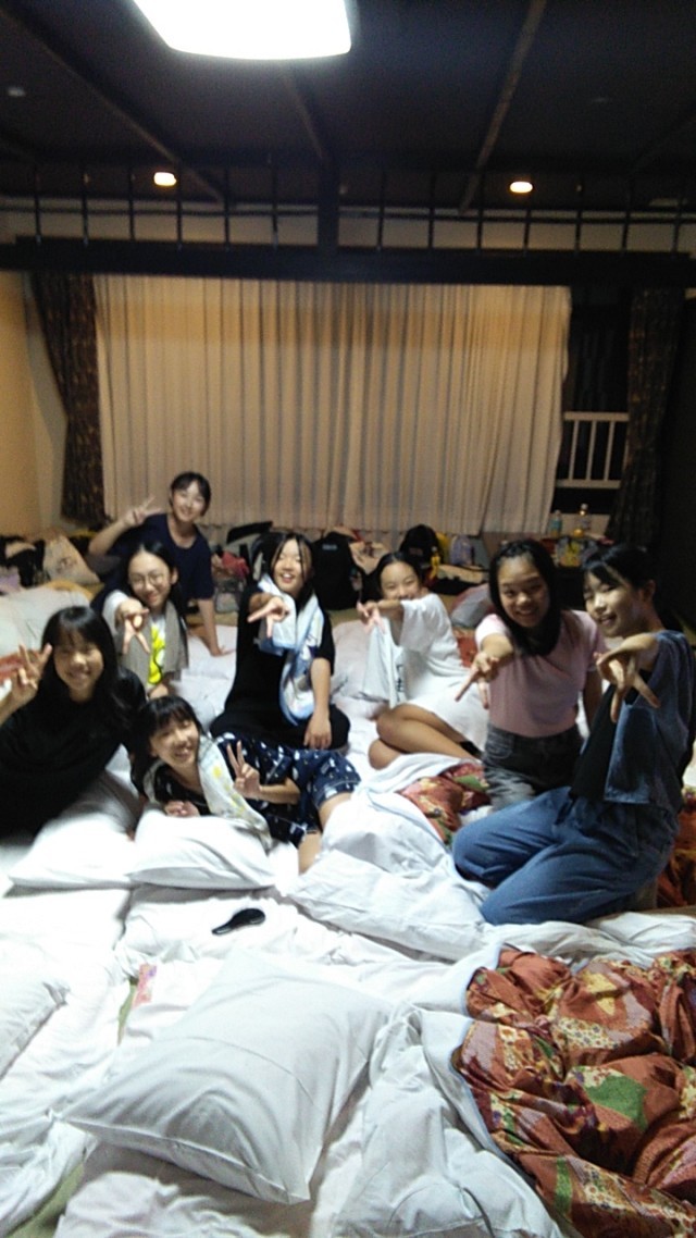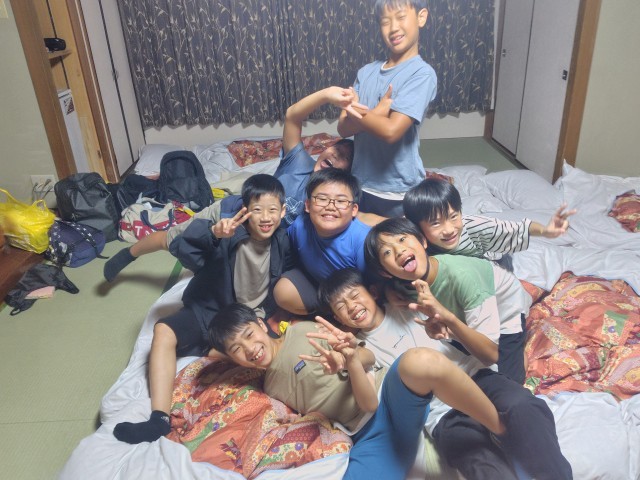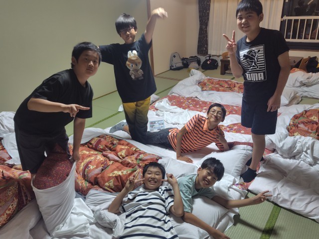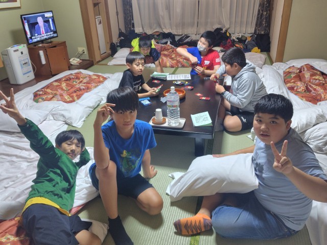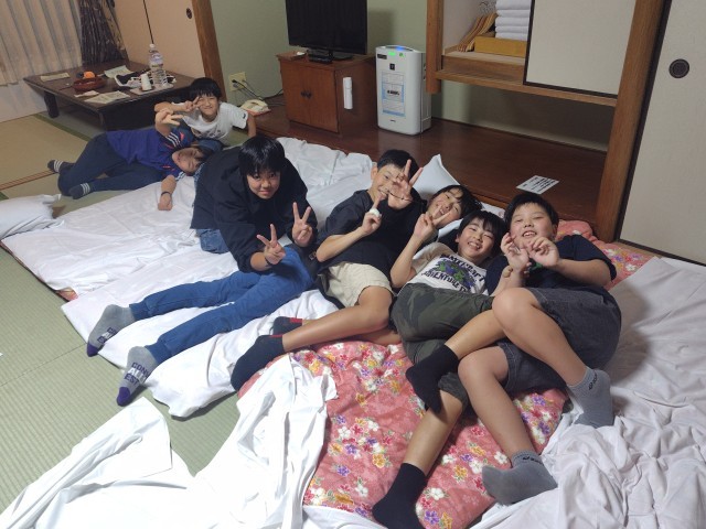 子どもたちはみんなお風呂に入り終わりました。自分たちで布団の準備をしたあとは、テレビを見たり、おしゃべりしたりしています。どの子も楽しそうで、笑顔があふれています。友達と過ごす最高の時間ですね。この後は、寝る準備をして22時に消灯です!「おやすみなさい!」