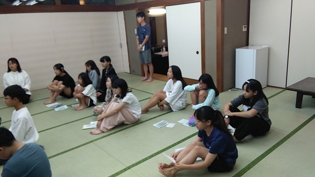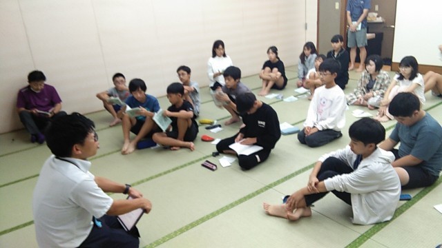今日最後の活動は部屋長会です。仲間の健康チェック、今日の振り返りをしたあと、このあとの就寝までの動き、明日の活動について確認しました。しっかりメモをとりながら話を聞いていました。さすが部屋長さんです。今日はゆっくり寝て、明日も元気で過ごしたいです。