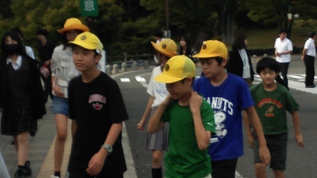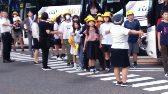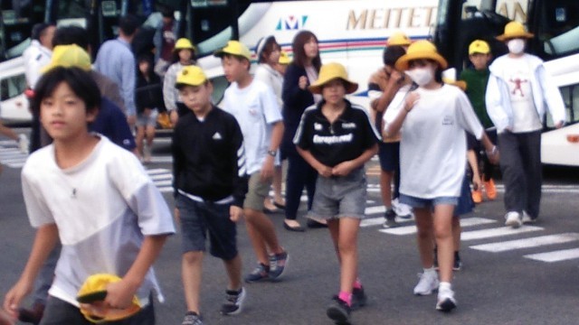 最後の見学地が終わりました。少し暑くてへばっている子もいます。今から学校に向かって出発!
