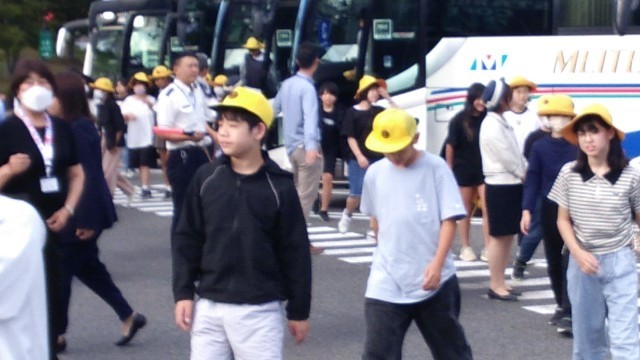 二条城の見学が終了しました。気温が高くかなり疲れたようてす。今から最後の見学地「太秦映画村」に向かいます。