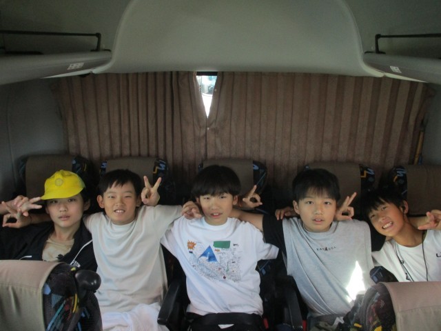 6年生が学校へ帰って来ました。解散式はバスの中で行いました。この2日間で、数えきれないほどの感動や発見があったと思います。その特別な思い出を胸に、これからさらに学びを深いものにしてほしいと思います。