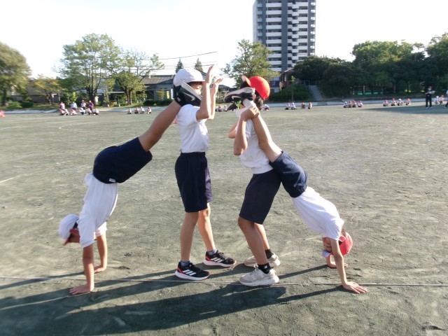 今週から、体育祭での表現の練習が、外で行われています。どの場所で演技をするのか、さすが6年生、すぐに覚えて移動することができています。来週は音楽に合わせて、技の練習をしていきます。完成めざして少しずつ進んでいます!