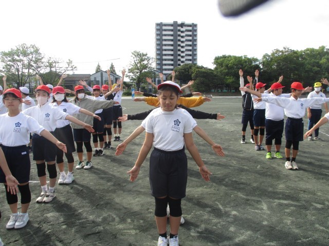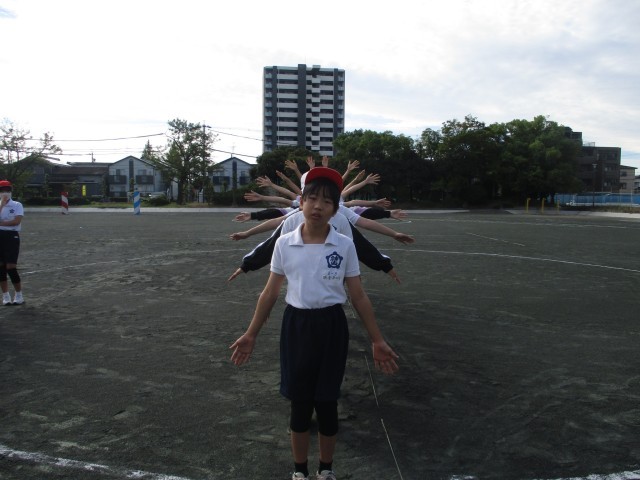 今週から、体育祭での表現の練習が、外で行われています。どの場所で演技をするのか、さすが6年生、すぐに覚えて移動することができています。来週は音楽に合わせて、技の練習をしていきます。完成めざして少しずつ進んでいます!