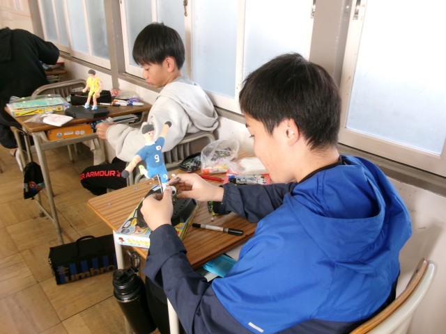 今日は「日本己書道場」による特別授業が行われました。全体講話の後、各クラスに師範の先生が入ってもらい、説明と実技でやり方を知ってから書いてみました。いろいろな書き方やアレンジを凝らしている様子が見られ、一生懸命さが伝わってきました。3学期に作品を公開する予定でいますので、お楽しみにしていてください。